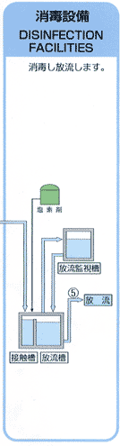 最後に処理水に次亜塩素酸ソーダを添加し消毒して放流します。