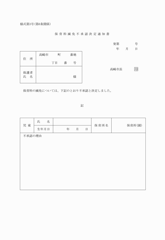 ○高崎市保育所費用徴収条例施行規則