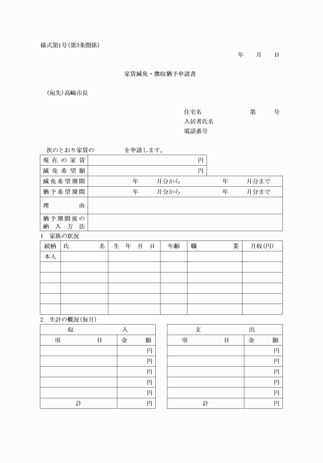 ○高崎市ふるさと住宅設置及び管理に関する条例施行規則