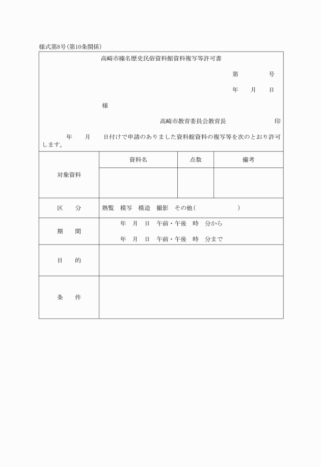 2 教育委員会は、資料を受託したときは、高崎市榛名歴史民俗資料館資料受託証(様式第10号)を交付する。
