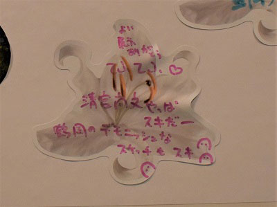 メッセージシールは山口薫さんのパレットと、展示作品の山名將夫さん《百合》をご用意しました。