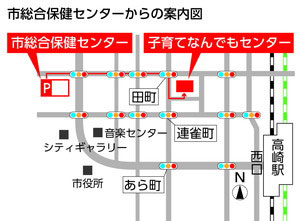 - 初回登録の手続きを行う場合は、市総合保健センターの駐車場をご利用ください。(オアシス高崎の正面玄関前への一時駐車はご遠慮ください)