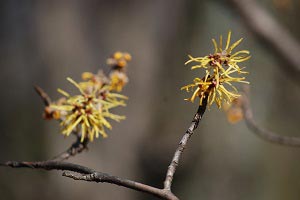 1月~2月にかけて葉よりも早く黄色の花を下向きに付ける。若葉による緑色染の手法で緑色を染める。
