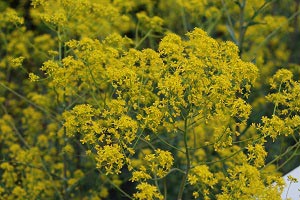 春先に総状花序に黄色い花を付ける。果実は秋に青く熟す。黄色い茎の材を用いて染色する。青味がかった黄色を染める。