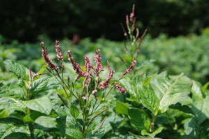 緑色を染める植物のひとつで、8月から9月にかけて緑葉をとり染色する。