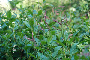 8月中の夏休み中の講習会「藍の生葉染」でたくさん使いました。9月になると花が咲き始めます。10月上旬が花が見ごろになります。