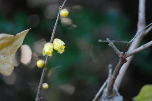 ここだけロウバイの花が咲いていました。ほとんどの木は花芽が少し膨らんでいるくらいです。(12月21日)