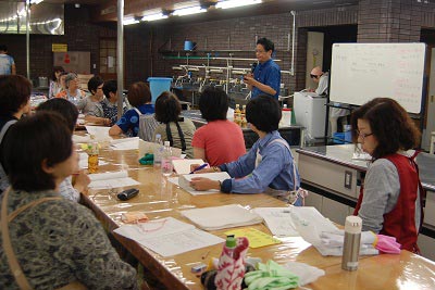 自主学習サークルは、染料植物園で主催する技法講習会を受講した皆さんのサークルで、実習室を利用して自主的に染色を行う機会を設けています。