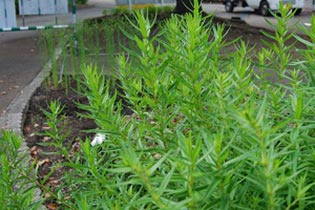 ベニバナは、畑にじかまきをして育てています。もう少ししたら間引きをします。梅雨時期は、アブラムシがつきやすく多湿に弱いようです。ベニバナで有名な山形県では7月上旬ごろから花が咲き始めるようですが、植物園では昨年が6月16日に開花しています。7月上旬まで花を楽しめます。