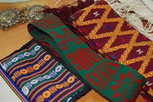 これまで久保さんには、講演会のほか、展示等でもお世話になりました。今回は写真や映像でブータン王国の染めや織りをご紹介いただくとともに、数多くの衣裳や織物、染糸などをお持ちいただき、皆さんに見ていただきました。