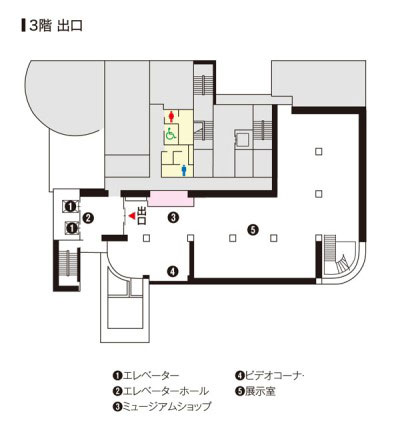 4階奥の階段から3階の展示室に続きます。4階よりも少し広い展示室になります。